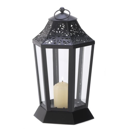 -. Title : Gifts & Decor Jet Black Garden Candle Lantern Hurricane Style Lamp