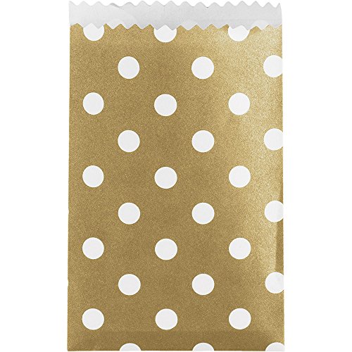 Creative Converting 315213 240-Count Paper Polka Dots, Gold, Small Treat Bags, Gold Polka Dots