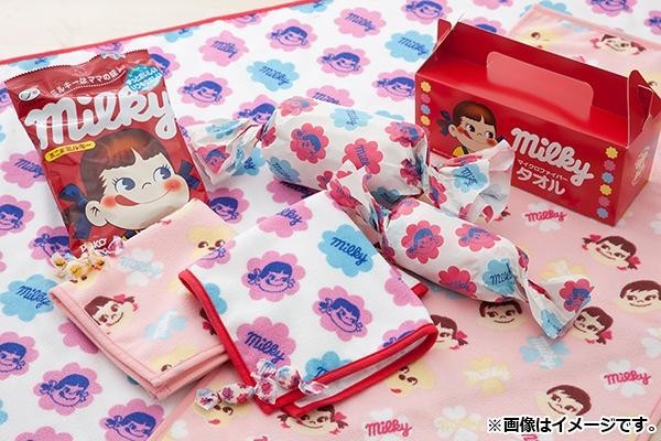 | あのミルキーのとってもキュートなタオルギフトです☆ |