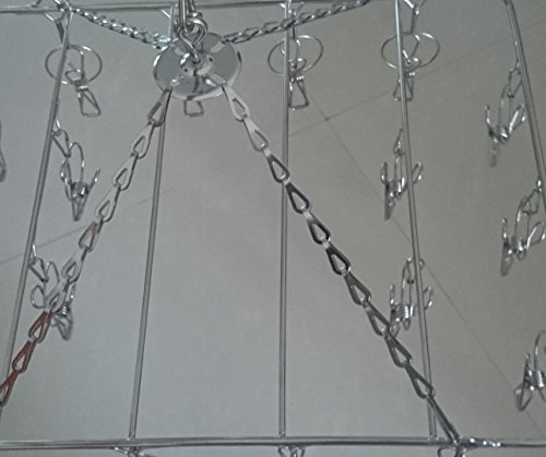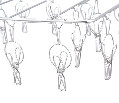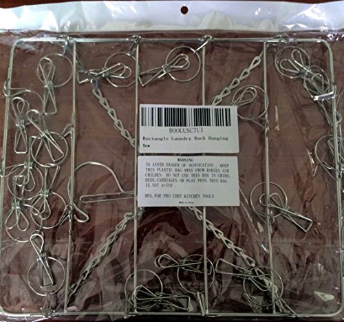 - Feature : SMART SPACE SAVER DESIGN lets you hang up to 18 garments in 1 compact space for multipurpose drying or storage. Fits all closets and perfect for apartments. Easily convert any indoor or outside patio or balcony into a drying area. A replacement clothes dryer for the environmentally conscious consumer. Save on expensive electricity power costs without wasting money on cheap flimsy contraptions. Collapses flat when not in use for easy storage and quick non-tangle frustration free setup. / TIGHT GRIP STURDY WIRE CLIPS All-metal hanging clips grab hold of fabrics to keep clothes in place while they drip dry. One piece integrated spring mechanism's tension is much stronger than weak wooden clothespins and guaranteed not to break or fall apart. Easy to open hanging clips are perfectly spaced to efficiently maximize air flow. Stainless steel leaves no rust marks on damp clothing, no vinyl coating to peel, and can be sanitized unlike wooden clothes pegs that easily splinter. / INTEGRATED HANGING HOOK Is as easy to use as a clothes hanger! Fits over any clothes closet or shower rod! With one hand move 18 items at once from the washing machine or sink to the drying area to your storage closet. Smooth swivel hook allows you to effortlessly rotate the rack. Easy latching safety lock prevents the hook from accidentally falling off when suspended in breezy areas or strong gusty winds. Hanging design saves valuable floor space while saving money on drying costs. / DURABLE CONSTRUCTION With superior quality welding designed to last a lifetime. Built strong with stainless steel chain links to support a fully loaded rack, even when filled with wet jeans or baby cloth diapers. Will not break, sag or stretch under the weight of wet laundry unlike plastic hangars or difficult to install retractable clothes lines. Will not fall apart, break down or disintegrate like plastic in the UV sunlight and extreme heat. Long lasting interior or exterior use. MULTIPLE USES! Not only for hand washed clothing that shouldn't go in the dryer but store undergarments without wrinkles or damaging delicate bras, garters, nylon lingerie fabrics; sock and scarf organizer; handkerchief holder; kitchen towel rack for dish washcloths; portable travel laundry for camping, RV, sailboats. Order extras for hanging swimsuits by the pool. Prevent mildew smells from piles of wet beach towels, sweaty sports gear, spandex cycling shorts or wool winter mittens. / ABSOLUTELY LOVE THEM OR WE'LL GIVE YOU A FULL REFUND! Try them today and buy with confidence with our simple, hassle-free, no-questions-asked 100% MONEY BACK SATISFACTION GUARANTEE! If for any reason you aren't happy or not experiencing the results you expected, we will immediatly refund your full purchase price. Our premium quality home goods are manufactured to the quality standards of the demanding American consumer. Tough durable construction and fine workmanship details are confidently backed by the manufacturer's risk-free LIFETIME REPLACEMENT WARRANTY that covers any defect in materials or craftsmanship in your investment when purchased from authorized resellers. Never waste your money again on constantly replacing cheaply made products. Consider purchasing two sets while stock lasts at our introductory low sale price, one would be a great gift when you need it! Click the 'Add To Cart" button to order.