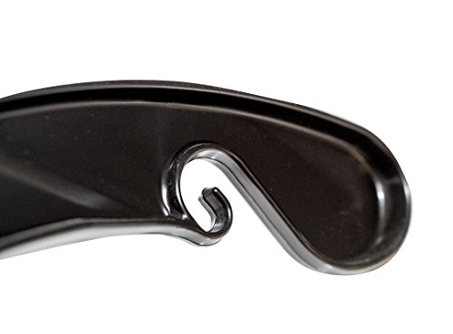 -. Feature : 17" hanger for dresses, sweaters, jackets, and other light to heavy weight garments / Black plastic for resistance to moisture / Metal swivel hook with chrome finish for resistance to corrosion / Notch on top of each arm for holding garment straps / Hook on bottom of each arm for holding string straps