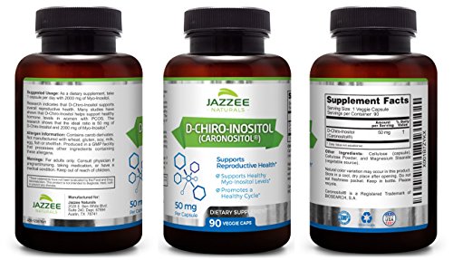 -. Feature : THE PREFERRED, ALL-NATURAL TREATMENT FOR PCOS: Myo-Inositol and D-Chiro-Inositol have been shown to lower elevated blood insulin levels, which more and more research is showing to be the cause of PCOS. The daily dosage provides 2000 mg of Myo-Inositol and 50 mg of D-Chiro-Inositol, which is the standard dosage for PCOS. / 3-MONTH SUPPLY AT A DISCOUNTED P.R.ICE: This bundle contains 3 bottles of Myo-Inositol and 1 bottle of D-Chiro-Inositol, which provides a 90 day supply. The daily dosage is 4 capsules (2000 mg) of Myo-Inositol and 1 capsule (50 mg) of D-Chiro-Inositol. Purchase all 4 bottles together, in one convenient bundle, and save 10% as compared to purchasing separately! / IDEAL 40:1 RATIO: Studies have shown that a 40:1 ratio of Myo-Inositol to D-Chiro-Inositol is the ideal ratio for treating PCOS. Each daily serving provides both the optimal dosage AND optimal ratio. / 100% VEGETARIAN: All ingredients, as well as the capsules, are 100% vegetarian, and made from the purest sources available. The capsules are made from cellulose, derived from plants. / GOLD STANDARD PRODUCTION: Your health and safety mean everything to us. For that reason, both our Myo-Inositol Capsules and D-Chiro-Inositol Capsules are manufactured in the USA, in an FDA certified facility with adherence to good manufacturing policies and under the most stringent quality control. You can rest assured that you get the best value for your money!