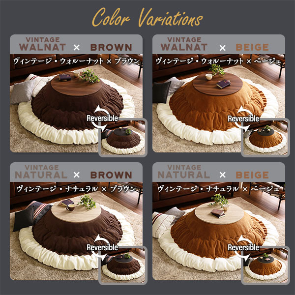 ●モダンなヴィンテージテイストのおしゃれなこたつとふわもこ布団のセットですぐに使える