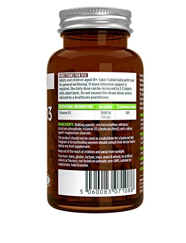 Pure Essentials Daily Vitamin D3 provides the most biologically active form of vitamin D that is easily absorbed by the body and taken up into the bloodstream. Small tablets deliver 2000 IU of vitamin D3, suitable for everyday use throughout the year. Excessive doses of vitamin D3 can upset the delicate ratio of calcium and vitamin D in the body, so higher doses should only be taken for acute periods as needed. As vitamin D3 is synthesized in the skin via exposure to sunlight, our production capacity is impaired when sun exposure is limited. Supplementation is therefore considered to be the most effective way to optimize consistently healthy blood levels throughout the year. Vitamin D3, also known as cholecalciferol, is the most biologically active form of vitamin D, as it is readily absorbed and easily utilized by the body. Vitamin D3 is a hormone-like vitamin that, as well as playing a role in cell division, contributes to normal muscle function and to the normal functioning of the immune system. It is best known for the role it plays in supporting healthy bones and teeth and this is because vitamin D3 is required to maintain normal blood levels of calcium. A daily intake of 2000IU is considered optimal for ensuring that an ideal vitamin D3 to calcium ratio is maintained, thus preventing potential issues surrounding abnormally high levels of calcium that can result from regular intake of high dose vitamin D3.Feature