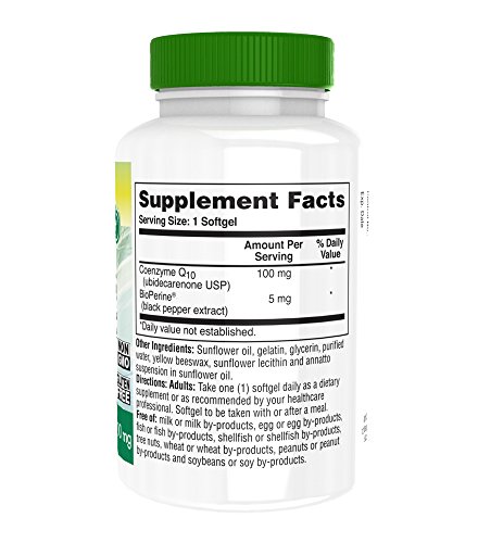 CoQ10 w/BioPerine 100mg 120 Softgels High Absorption, Non-GMO, Soy-Free, 100% Natural Coenzyme Q-10