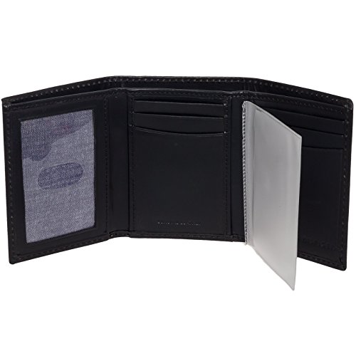 Carry your cash in style with this Hove Passcase Trifold Wallet from Tommy Hilfiger. Constructed of soft, textured genuine leather, this trifold opens to reveal a spacious interior sure to keep you properly organized. 6 card slots, thumb-glide ID holder, 2 utility pockets, and a lined currency pocket give you plenty of options when storing your everyday necessities. The exterior features the Hilfiger laurel logo and name embossed on the front, so everyone knows who you carry. Presented in a gift box. Measures 3.15" x 4.15" x 0.6" (when closed).Feature