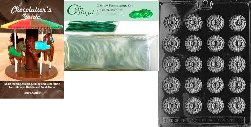 Cybrtrayd MdK25GRBk-F008 Daisies Fruits and Vegetables Chocolate Candy Mold with Chocolatier's Bundle, Includes 25 Cello Bags, 25 Green Twist Ties and Chocolatier's Guide