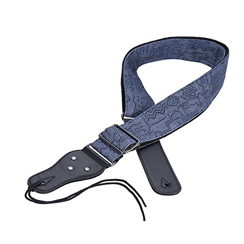 -. Feature : Suits for kinds of acoustic guitars(with tie), electric guitars and bass. / Adopts for denim cotton and woven cloth, durable and comfortable for your performance. / Adjustable length, 5cm / 2in width, one size fits most people. / Designed with a pocket for guitar picks. / With delicate pattern, well liked by guitar players.