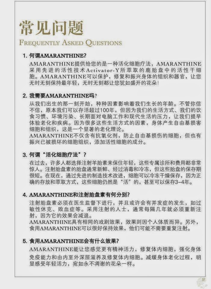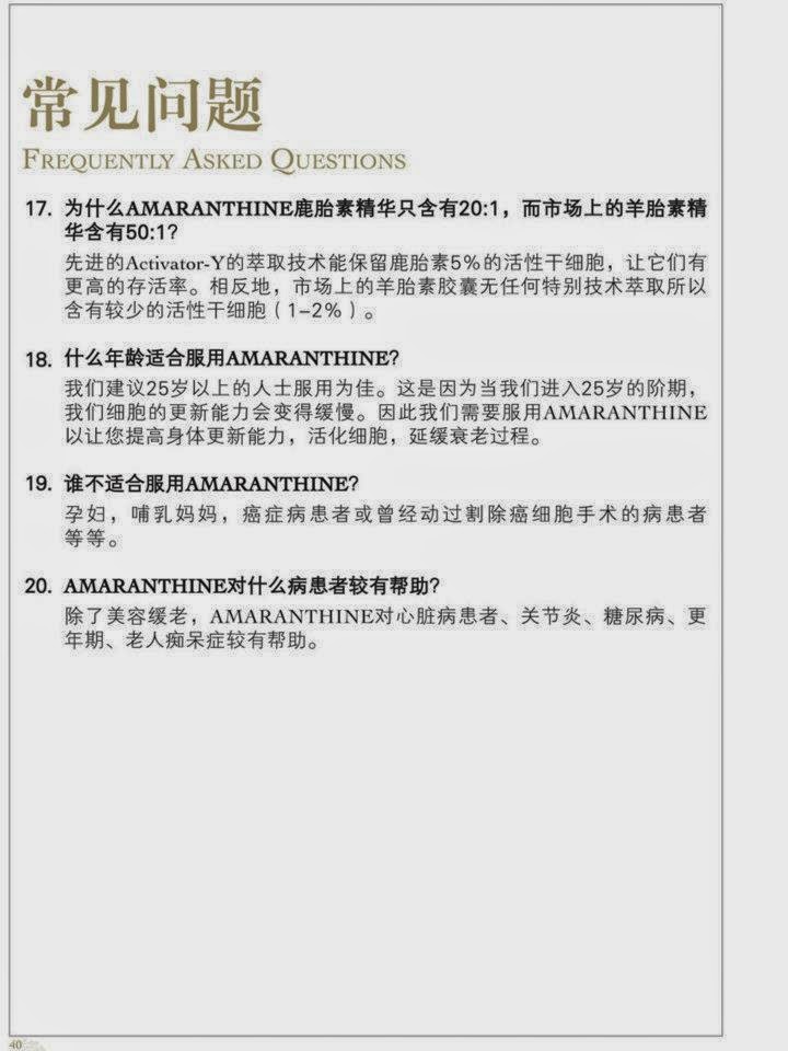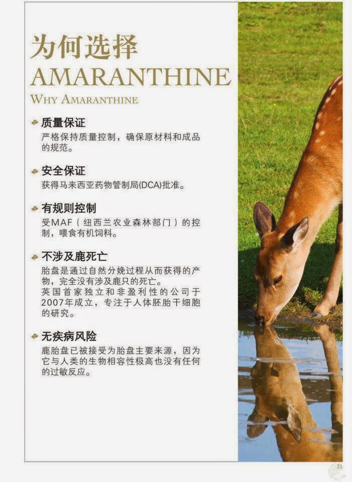 AmaranthineRetain Youth, Health & Vigour NaturallyHuman cannot resist the aging process, but you actually may reclaim a long-lasting youthful vigour! A research which is done by experts has showed that deer placenta has excellent biocompatibility without any allergic reactions in human. AMARANTHINE uses the new exclusive Activator-Y reactive technology to extract the most active and most energetic live stem cells from fresh deer placenta. The advanced Activator-Y Reactive Technology can inhibit the formation of aging factor, and regulate endocrine functions.