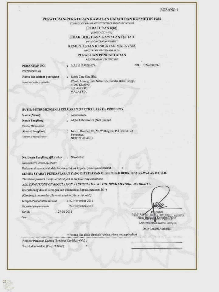 获得马来西亚药物管制局(DCA)批准。