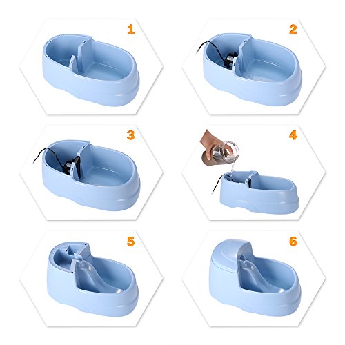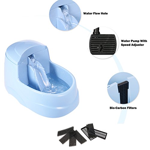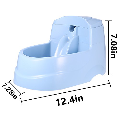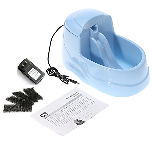 Studio : Aoxsen Publisher : Aoxsen Binding : Misc. Product Description This is a cute and practical pet fountain for your dog or cat. With excellent bio-carbon filters, water quality will be increased and pet will enjoy healthier and cleaner water. Cute running water will attract pet's attention and encourage them to drink more. Why not get it for your pet? Features: 2.5L capacity provides enough drinking water for pet. Bio-carbon filters kill bacteria, eliminate contamination to keep water clean. Fresh running water is funny and encourage pet to drink more. No noise design with 12V low output, ensure you and pet's safety. Suitable for all-sized dogs, cats to use. Adjustable water-flow speed, auto to feed pets water when you're on work, travel and out. Power by AC adapter, convenient to use. Specifications: Color: Blue Material: ABS Power Supply: AC adapter Water Capacity: 2.5 Liters Product Size: 31.5 * 18.5 * 18cm / 12.40 * 7.28 * 7.08in Product Weight: 656.5g / 23.15oz Package Size: 32 * 19 * 15cm / 12.59 * 7.48 * 5.91in Package Weight: 1059.5g / 37.38oz Package List: 1 x Pet Water Dispenser 5 x Filters (One Has Been Assembled) 1 x Power Adapter 1 x User Manual