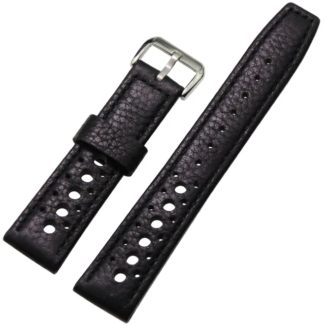 ZLIMSN 22 미리메터 줄 내구성 교체 팔찌 블랙 정품 가죽 시계 밴드 스트랩 및 핀 버클 스테인레스 스틸 버클