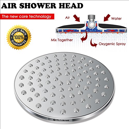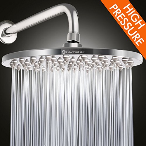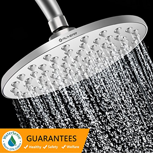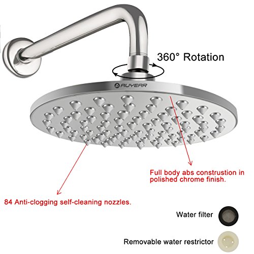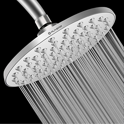 Shower Head, Auyear Fixed Showerhead Rainfall High Pressure Luxury 8'' Chrome Finish Overhead Shower Head Perfect for Bath, Self-Cleaning Silicone Nozzles, Adjustable Ball Jiont, Easy To Install