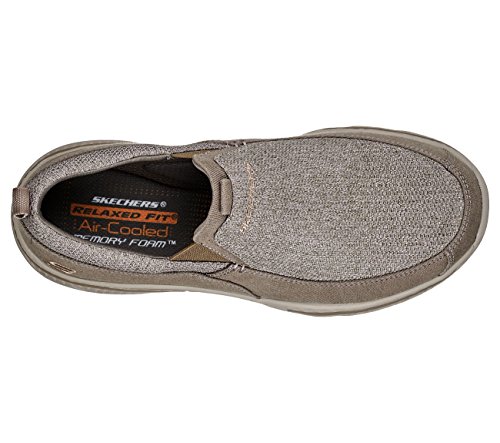 Binding : Apparel Product Description Comfort and versatile style is on lock when you wear the SKECHERS Relaxed Fit®: Creston - Erie shoe. Soft woven canvas fabric and Skech-Knit mesh fabric upper in a slip on casual comfort loafer moc with stitching and overlay accents. Air Cooled Memory Foam insole. 0