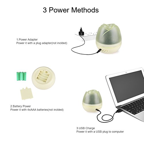 Powered by USB cable with charger/computer or 4 AAA batteries(Not Included).