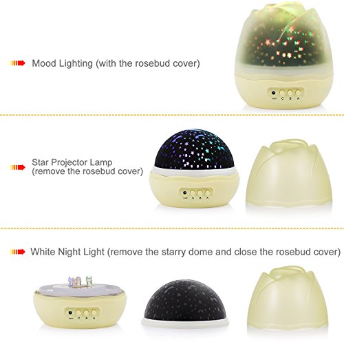 Multifunction: Constructed with the removable lamp shade, you can make it operate as a night light or have a romantic projection show with different theme.