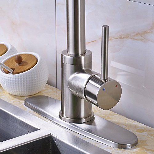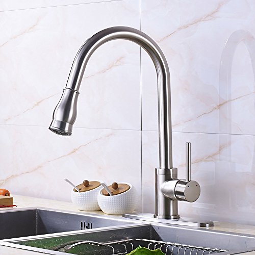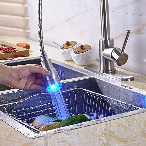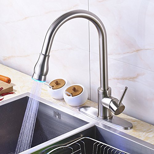 Votamuta Commercial Single Handle Pull Out Sprayer Stainless Steel Kitchen Sink Faucet, Brushed Nickel Kitchen faucets with LED Sprayer
