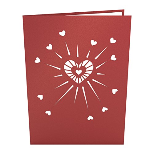 Studio : Lovepop Publisher : Lovepop Binding : Office Product Product Description The subtle sparkle of our Love Explosion Valentine's Day Card Pop Up Card is accented by a super cute laser-cut heart design. An intricately cut center heart is surrounded by smaller floating hearts on this beautiful card. Open this Valentine's Day card and enjoy a pink and red three-dimensional explosion of paper hearts outlined with whimsical Xs and Os and scroll embellishments. 0