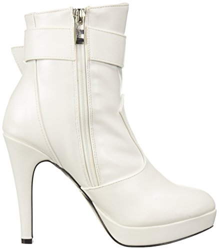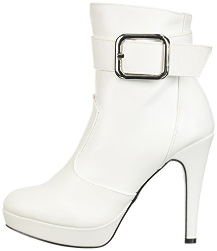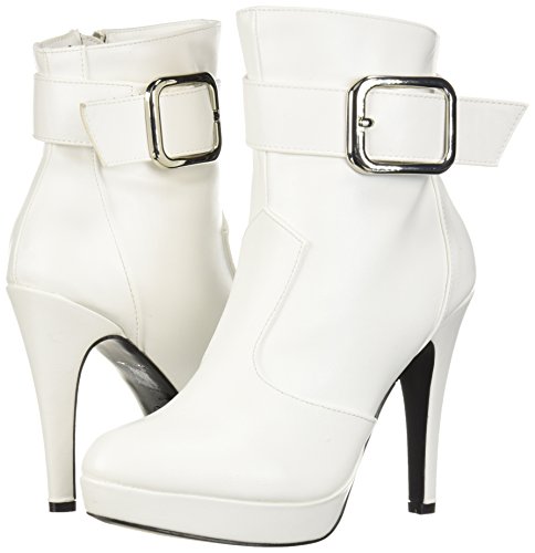 Product Description High heeled platform bootie with asymmetrical zipper accent. Inside zipper for easy on and off. Fold over flap with snap button closure. Cushioned insole. 0