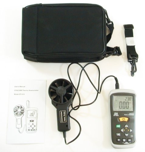 This device is a must have for measuring the wind speed (up to 108 Kmeters per hour) and air flow (up to 999.9 cubic meters per minute). The built-in thermometer measures the air temperature (up to 60 deg C) as the air speed is measured. DT-619 was designed to be used at home, office, factory or industrial building.