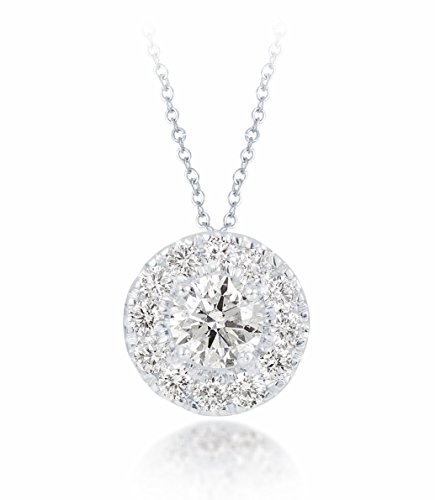 -. Title : Diamond Studs Forever 1.00 Carats Total Weight Diamond Halo Slide Pendant With Chain GH/I1 14K White Gold
