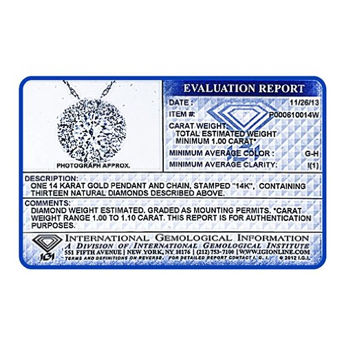 -. Feature : Made in USA / 100% Conflict Free Natural Diamonds / IGI USA Certified / Solid 14K White Gold / I1 Clarity, G-H Color