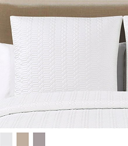 Echelon Home Laguna Quilted Cotton Shams, Euro, White