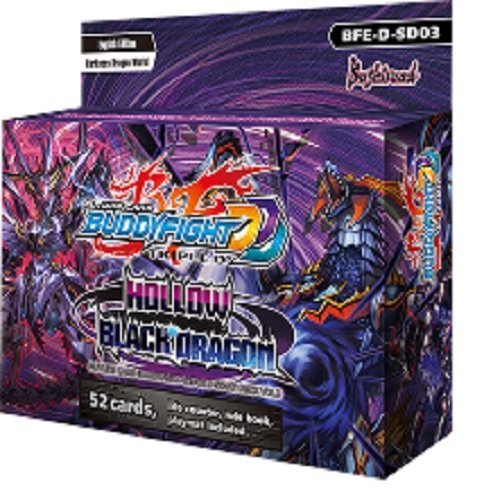 -. Binding : Toy -. Brand : Buddfight -. EAN : 8885009401957 -. Feature : Hollow Black Dragon Starter Trial Deck! Inexpensive deck to get beginner going with interesting new abilities which destroy your opponent's deck!! / Are you ready to subdue the Black Dragons? / A perfect way to start with its low P.R.Ice and user-friendly cards, jump into the world of Buddyfight with your friends! / Each start deck contains 52 pre-set cards, Life counter, rule book, and paper playmat / English version. -. IsAdultProduct : 0 -. Label : Bushiroad -. Manufacturer : Bushiroad -. MPN : LYSB01BXLYWEO-TOYS -. PackageQuantity : 1 -. PartNumber : LYSB01BXLYWEO-TOYS -. ProductGroup : Toy -. ProductTypeName : TOYS_AND_GAMES -. Publisher : Bushiroad -. Studio : Bushiroad -. Title : Hollow Black Dragon Start Deck - Future Card BuddyFight TCG English BFE-D-SD03 - 52 cards