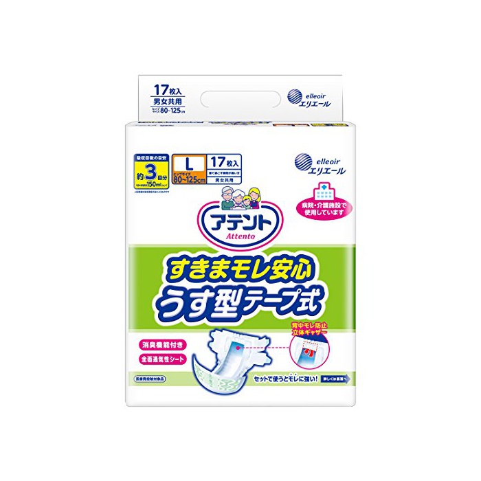 《아텐토》 틈《모레》안심 얇은형 테이프식 L사이즈 17매입【ADL구분:자고 보내는 것이 많은 분】