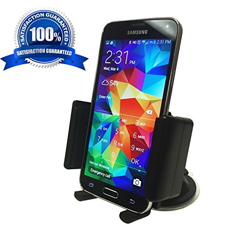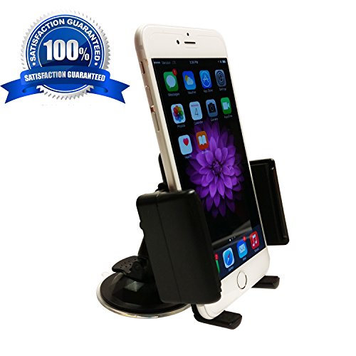 -. Feature : Will not damage vehicle/ no sticky residue / Padded clamps properly secures ALL phones and GPS devices / Easily attaches to windshield and other surfaces / Fully assembled ready for use/ no tools required / Rotates 360⁰ for best setting