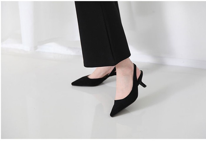 商品名:パンプス レディース スエード調 スリングバック ポインテッドトゥ 2017 秋 冬 ファッション 靴 婦人靴