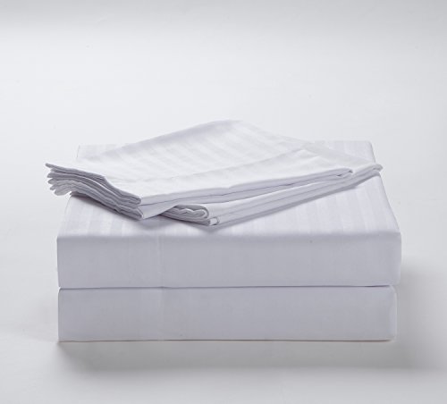 Chezmoi Collection Dobby Stripe 4-piece Wrinkle Resistant High Quality 100% Brushed Microfiber Super Soft Deep Pocket Sheets Set (Queen, White)