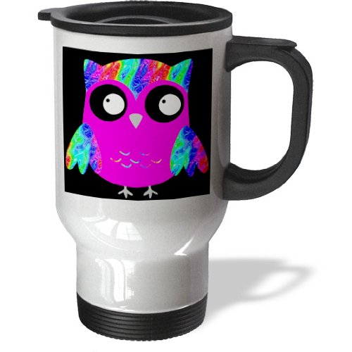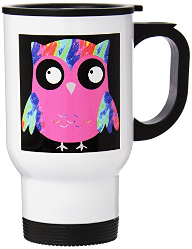 Studio : 3E Rose (Kitchen) Publisher : 3E Rose (Kitchen) Binding : Kitchen Product Description Cute Psychedelic and Neon Pink Sixties Owls Travel Mug is a great way to take your favorite hot or cold drink along. With a tapered bottom this stylish 14oz mug fits in a standard cup holder and features an easy-grip handle with thumb rest, slide opening lid and slanted drinking surface. This travel mug is made of stainless steel. Not microwave safe, hand washing is recommended. 0