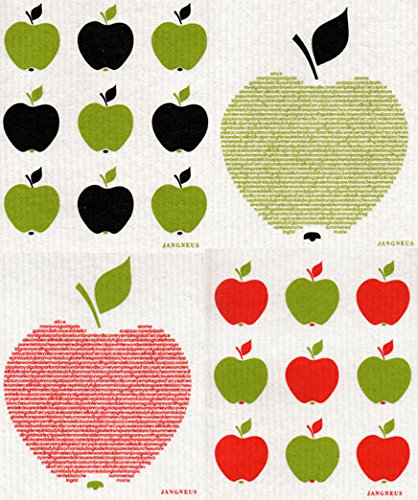 -. Feature : Contemporary Swedish Dish Cloths - 4 Coordinating Designs / All natural materials: 70% Cellulose & 30% Cotton / Designed in Sweden by Marie Jangneus and made in the UK with water based inks / Reusable and 100% biodegradable; Approx 6.75 x 8 inches each / Absorbs an amazing 15 times its own weight in water