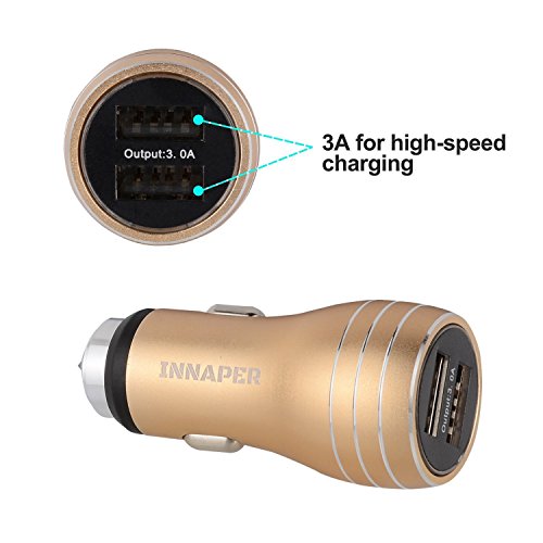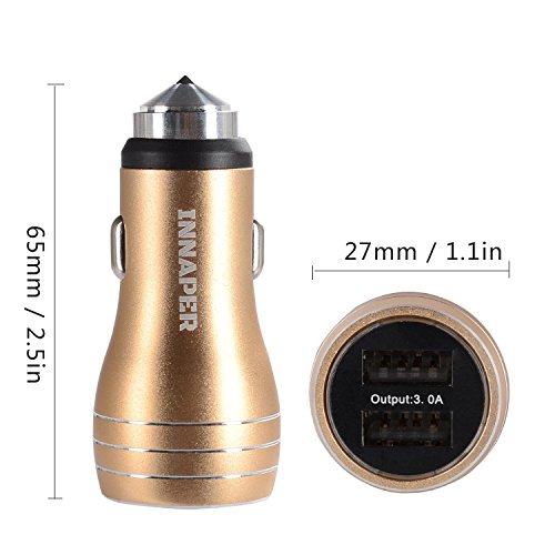 Car Charger with Emergency Hammer, INNAPER 15W 3A 2 Smart Port USB Car Charger for LG, Blackberry, HTC, Nexus 5 6 7, iPhone 6S Plus 6 Plus 6 5SE 5S, Samsung Galaxy S7 S6 Edge Plus Note 5 4 Tab S, iPad