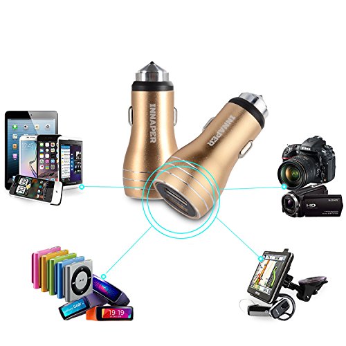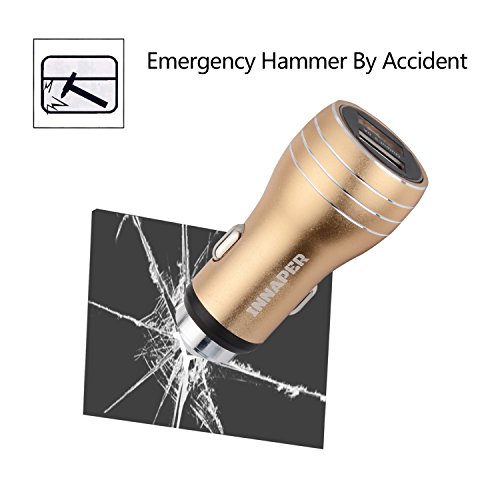 INNAPER car charger with emergency hammer not only a car charger,but also a safety hammer for escape by the accident,the top's material of the charger is wolfram steel,it can break the car window