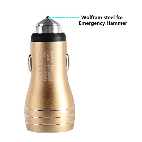 Car charger with emergency hammer charging for cell Phones like iPhone 6S Plus 6 Plus 6 5SE 5S 5 5C 4S,Samsung Galaxy S7 S6 Edge Plus Note 5 4 S5,LG G5 G4, HTC,Nexus 4 5 6, HTC,Blackberry, tablet like iPad,iPod,MP3 Players,Digital Cameras and more