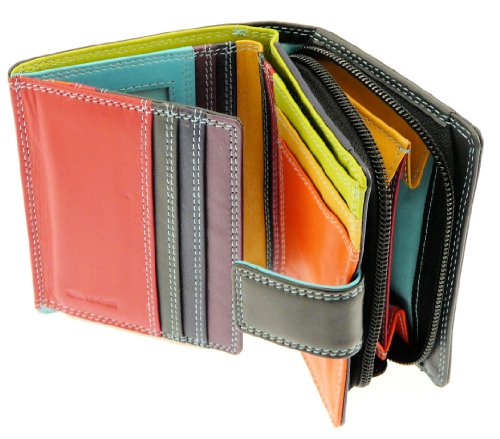 -. Brand : Neptune Giftware -. ClothingSize : One Size -. Department : womens -. Feature : Ladies versatile super soft real leather wallet purse & credit card holder with zip up coin purse / section - holds 8 credit cards - black & multi-color. / A very useful ladies purse with lots of space to carry plenty of credit cards notes and change. / The main body of the purse is fastened using a pop stud. Has 8 credit card slots. Two of these on the main body of the leather purse and 6 of the credit card slots are on either side of the flip out section. There is also a transparent window which could hold another credit card or ID card / bus pass etc. There are a further 5 miscellaneous slots behind the card slots. There is a big section for holding notes. / On the back of the purse there is a further zip fastening / change section which is a concertina effect making it easier to rummage around in. This change section has two compartments. The ladies purse wallet measures approximately 12 x 9.5 x 3 cm when fully closed and empty. / A superior quality multi-color leather purse which is suitable for everyday use as it is big enough to hold most of your everyday essentials but still small enough to carry around with ease. -. ProductGroup : Apparel -. ProductTypeName : HANDBAG -. Size : One Size -. Title : Neptune Giftware Ladies Versatile Super Soft Real Leather Wallet Purse & Credit Card Holder With Zip Up Coin Purse / Section - Holds 8 Credit Cards - Order of the internal colors may vary from the picture