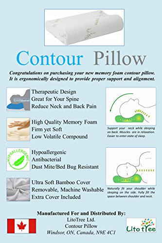 LitoTree Memory Foam Neck Pillow with Removable Washable Soft Bamboo Cover - Contour Care Pillow, Sleeper Orthopedic, Anti Snore, Prime Soft Supportive Comfortable Sleep Pillow, Standard Size