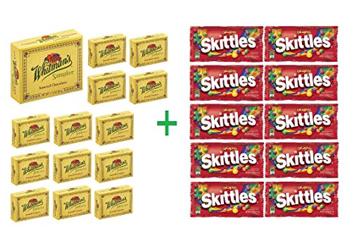 -. Title : Whitman's Sampler Assorted Chocolates 1.75 OZ (Pack of 14) + (10 Pack of Skittles, 2.17 oz)