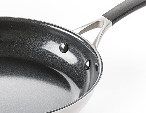 Class and convenience all in one? We're talking about the GreenPan Minneapolis 12" Ceramic Non-Stick Open Frypan of course! Built with stainless steel bodies with thick, encapsulated bases for consistent cooking results, this collection is also induction compatible for use on all stovetops. Stay-cool silicone handles give you a comfortable, secure grip, while glass lids help you keep an eye on your food without losing the heat. Coated with GreenPan's patented Thermolon ceramic non-stick, extreme durability for intense daily use, now metal utensil safe. Complete with drip free edges for less mess and dishwasher safe for added convenience, Minneapolis brings fun back to cooking.Feature