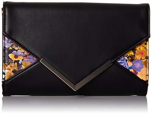 Envelope clutch with floral insets and decorative hardware