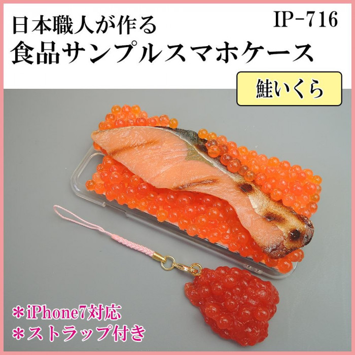 おいしそうな鮭いくらをiPhone7ケースに。ミニすじこのストラップまで付いています☆見ているだけでお腹が空いてしまうほどのクオリティ!食品サンプル好きにはたまらない商品です。 |