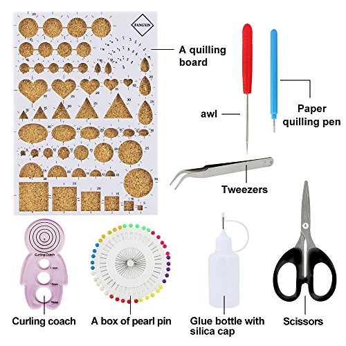 - All tools you need to get started with paper quilling this kits already include :quilling board, tweezers, paper quilling pen, scissors, awl, pearl pins, a curling coach, empty glue bottle with silica cap.
