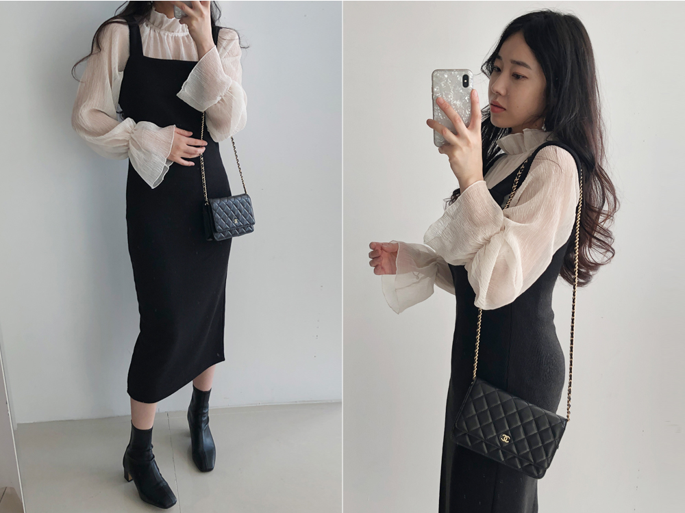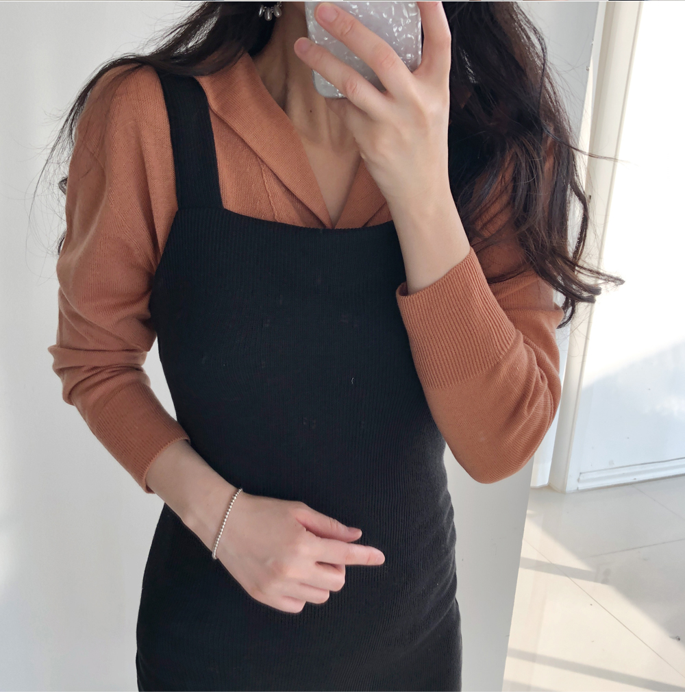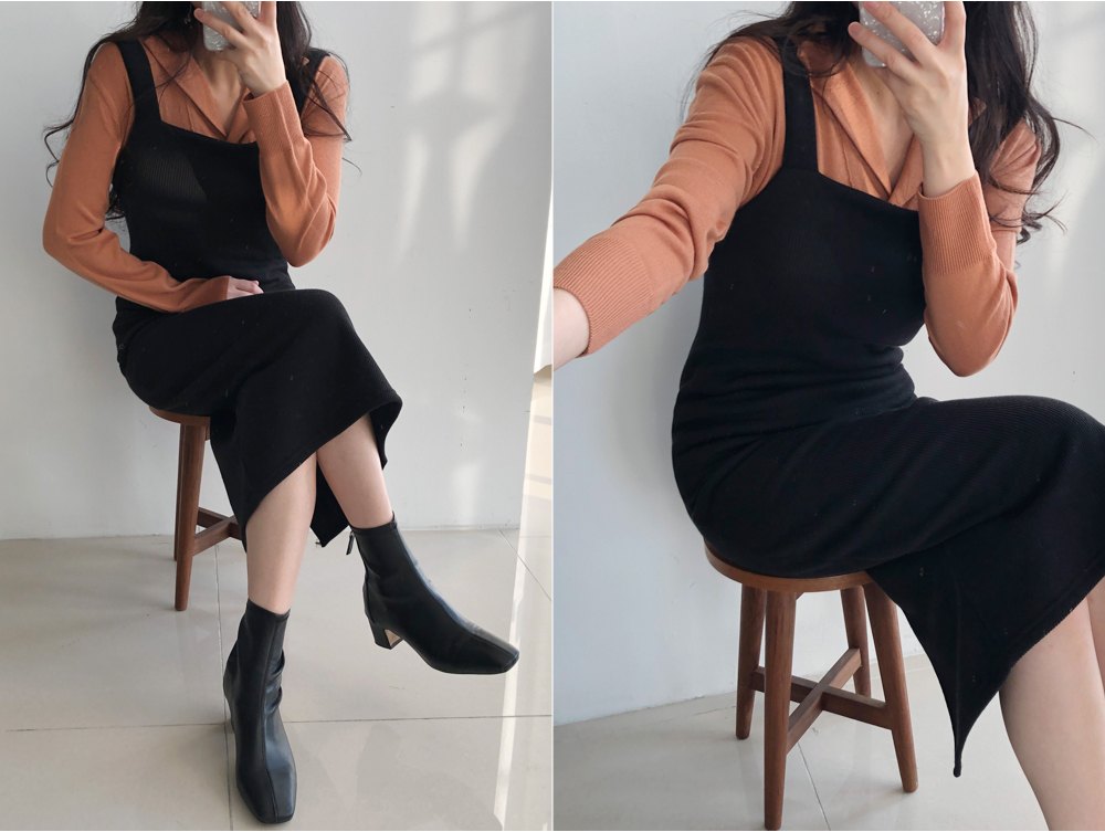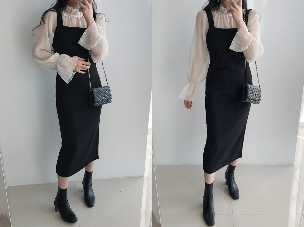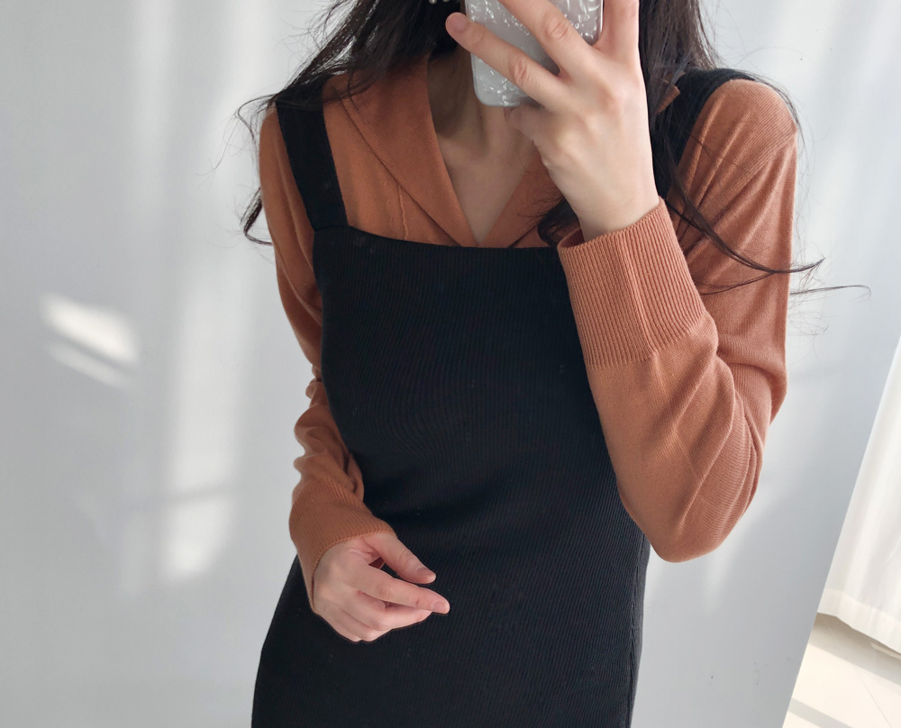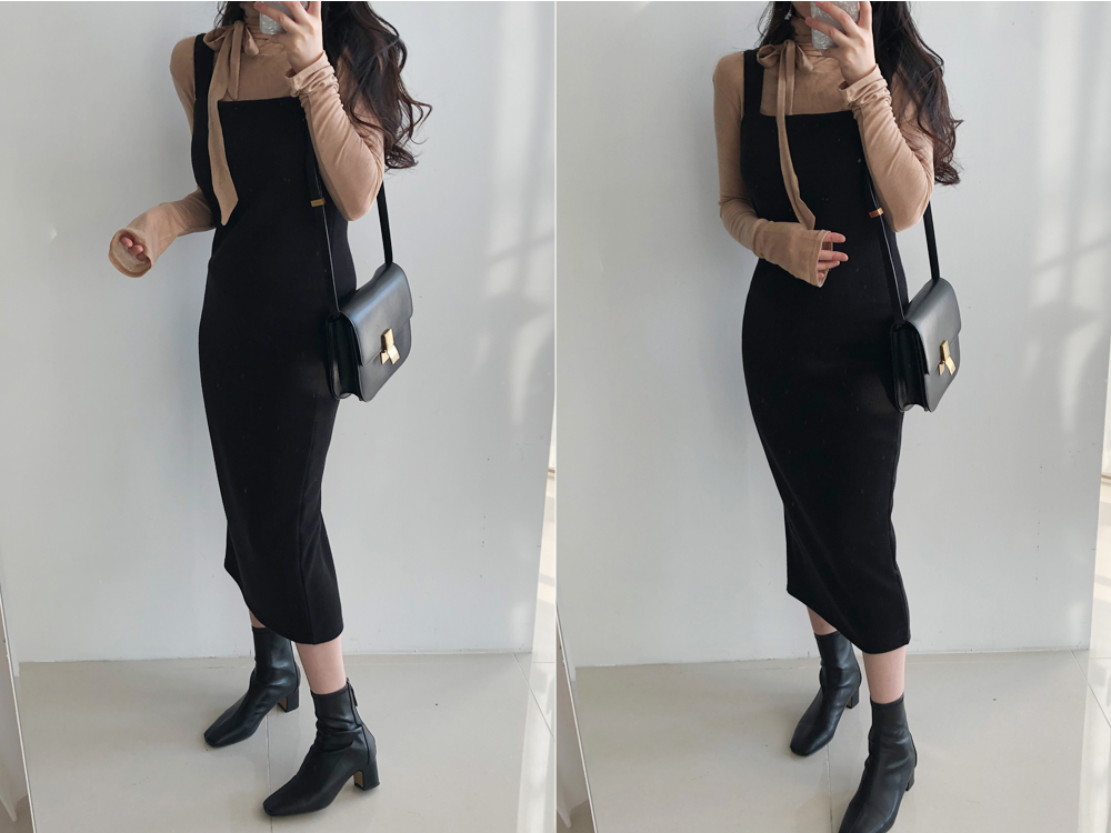 골지 기모 멜빵 니트 원피스