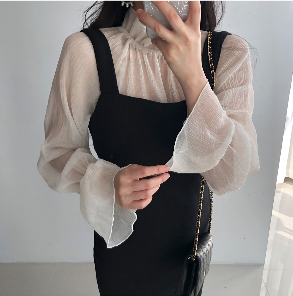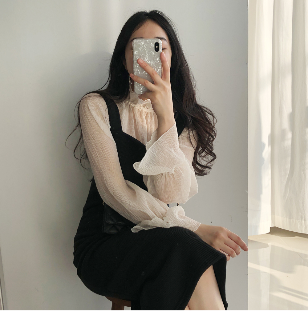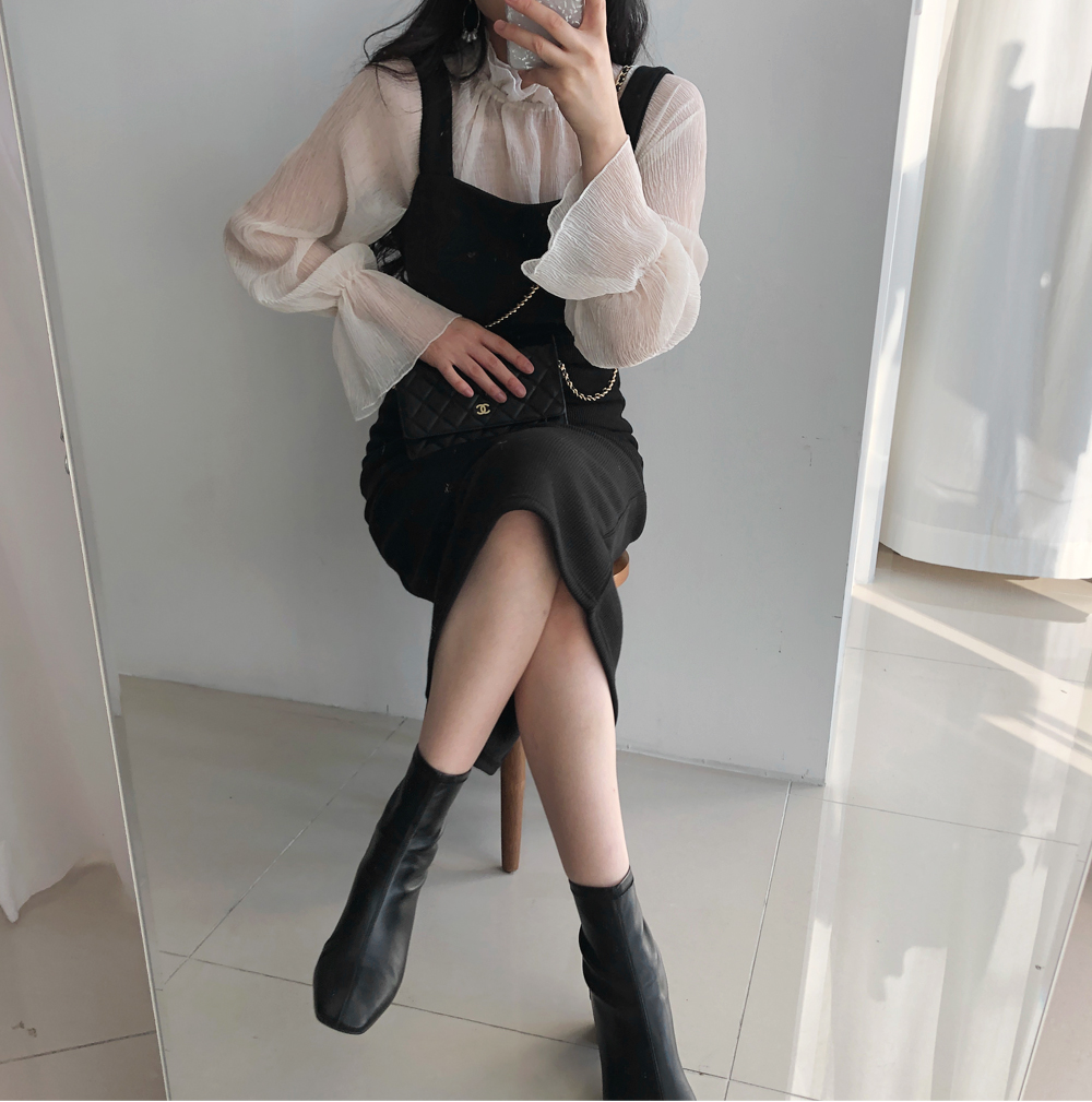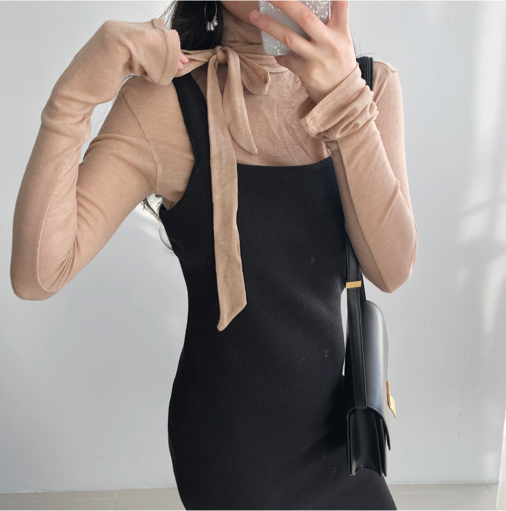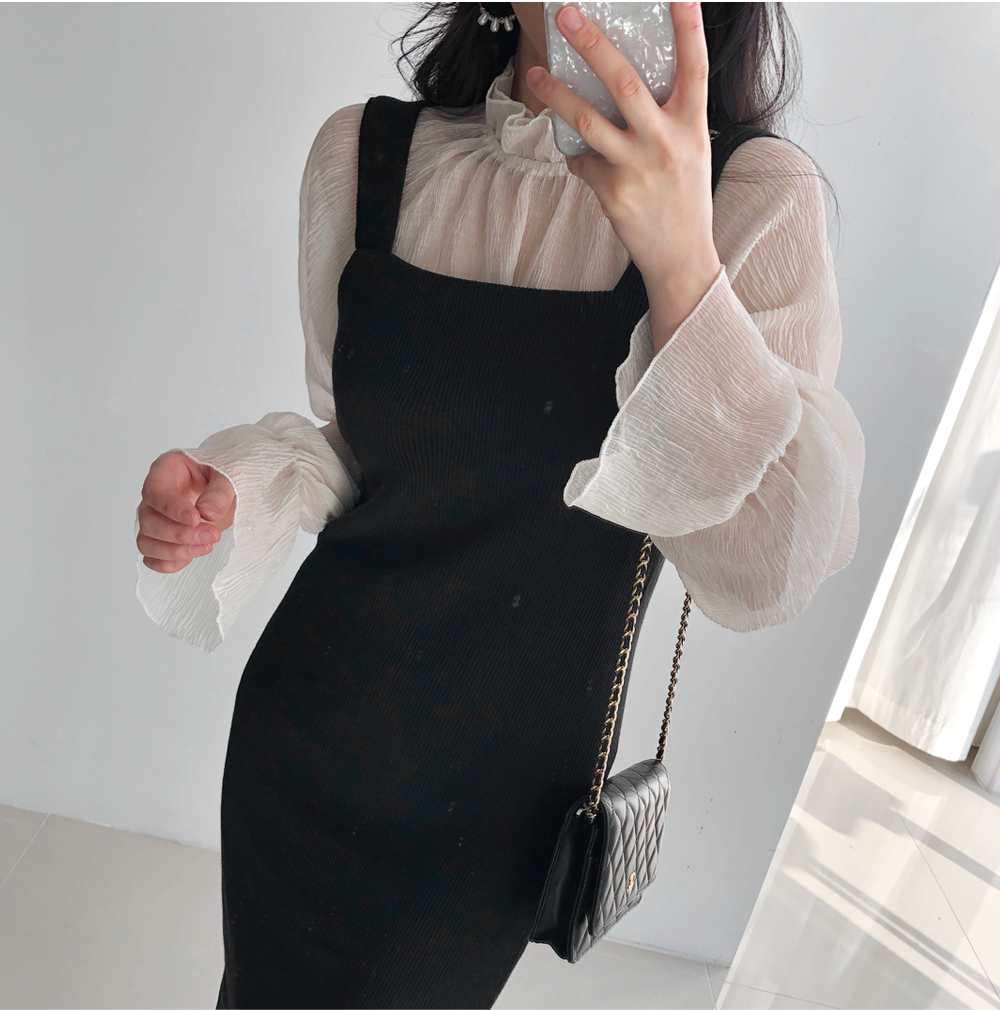 골지 기모 멜빵 니트 원피스