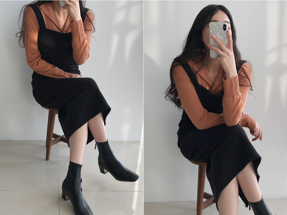 리플라워에서 진짜 심여을 귀울여 만든 골지니트 원피스를 소개할게요.