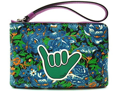 -. Brand : Coach -. Color : Blue Multi -. Department : womens -. EAN : 0889532693436 -. Feature : Corner Zip closure, leather wrist strap / Fabric lining with card slots / Dimensions: 6.125" L x 4" H x .5"D -. ProductGroup : Shoes -. ProductTypeName : HANDBAG -. Title : Coach Rose Meadow Print Corner Zip Small Wristlet Sv/Blue Multi F57595 -. UPC : 889532693436