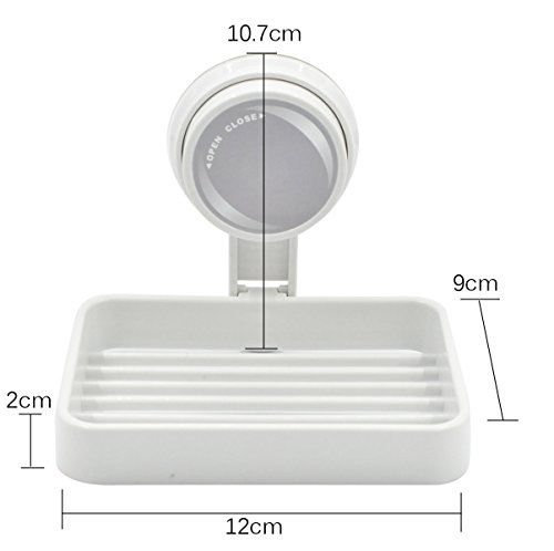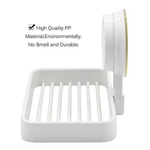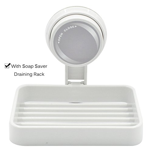 - QUALITY AND UNIQUE DESIGN --- Made of high quality PP and Silicone material,Eco-friendly,Reusable,and Waterproof.Unique Power-Lock design and with Soap Saver Draining Rack.Provides maximum suction onto Smooth, Non-porous surfaces,definitely sturdy,not easy to fall off once suctioned on the surface.