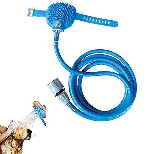 Multifunctional:2-in-1 Sprayer with hose and Scrubber design,gives your dogs or cats a shower and a massager,very comfortable.The water will penetrate deeply into the pet dog hair and the glove will clean it in same time.The glove grooming the hair help to channel water soaking into hair then clean it well.